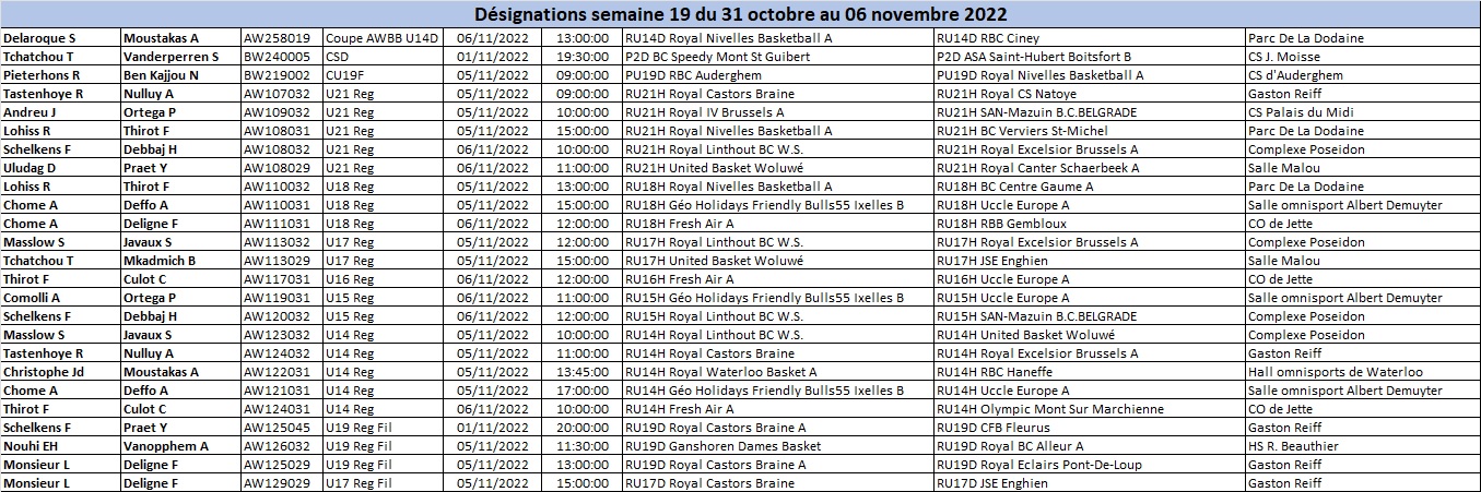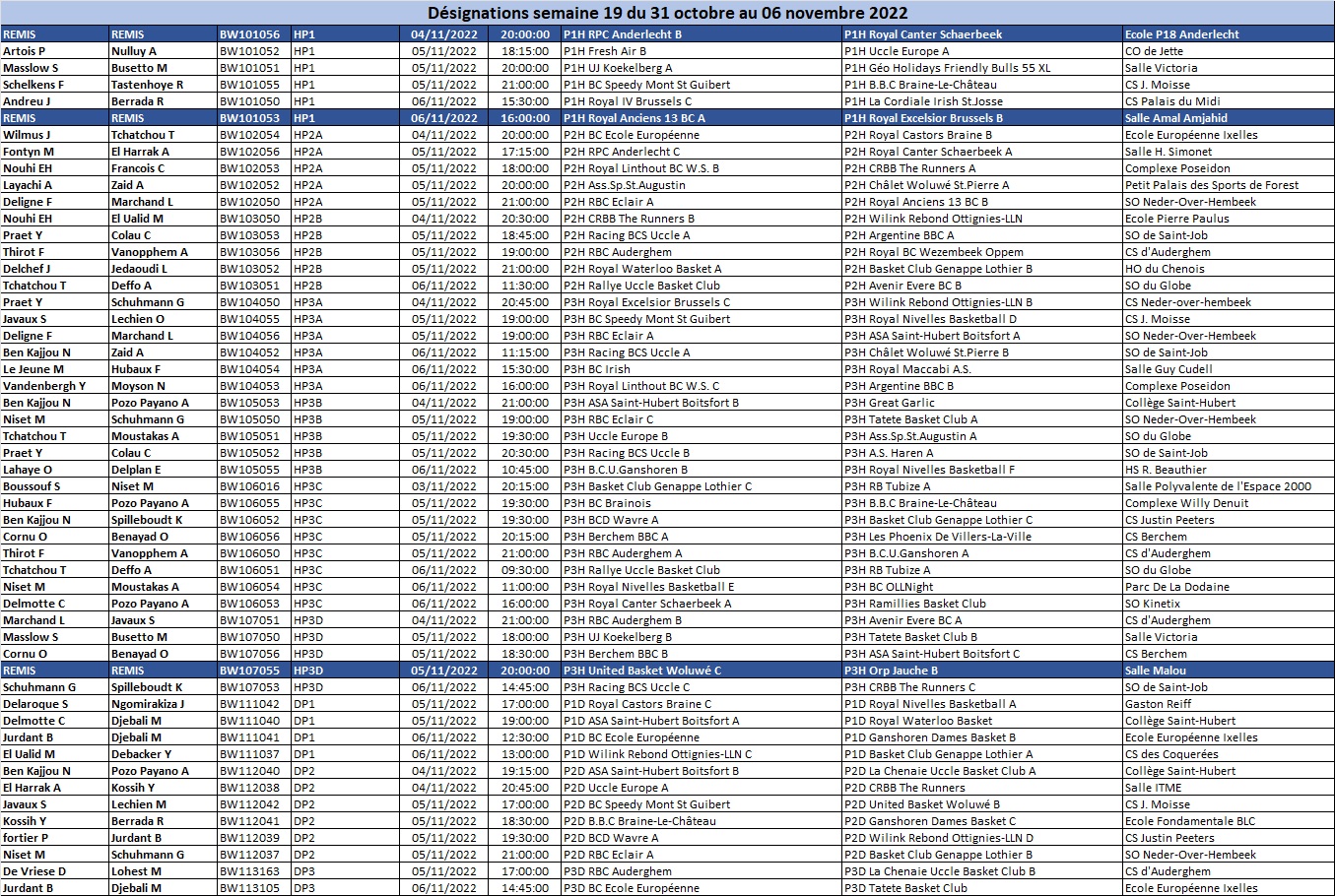 Désignations semaine 19 du 31/10 au 06/11/22 03/11/2022 Nominations arbitres sem-19-31-oct-au-06-nov-22-definitif-jeunes-regionaux sem-19-31-oct-au-06-nov-22-definitif-seniors-provinciaux sem-19-31-oct-au-06-nov-22-definitif-jeunes-provinciaux sem-19-31-oct-au-06-nov-22-definitif-rencontres-remises-ou-a-jouer-sans-arbitres