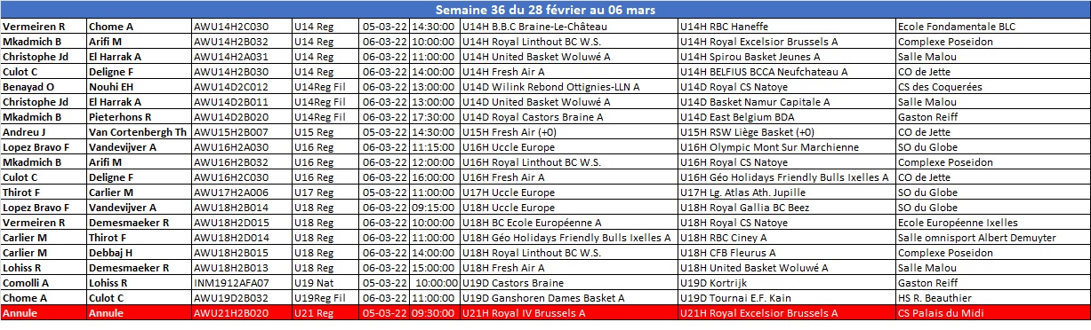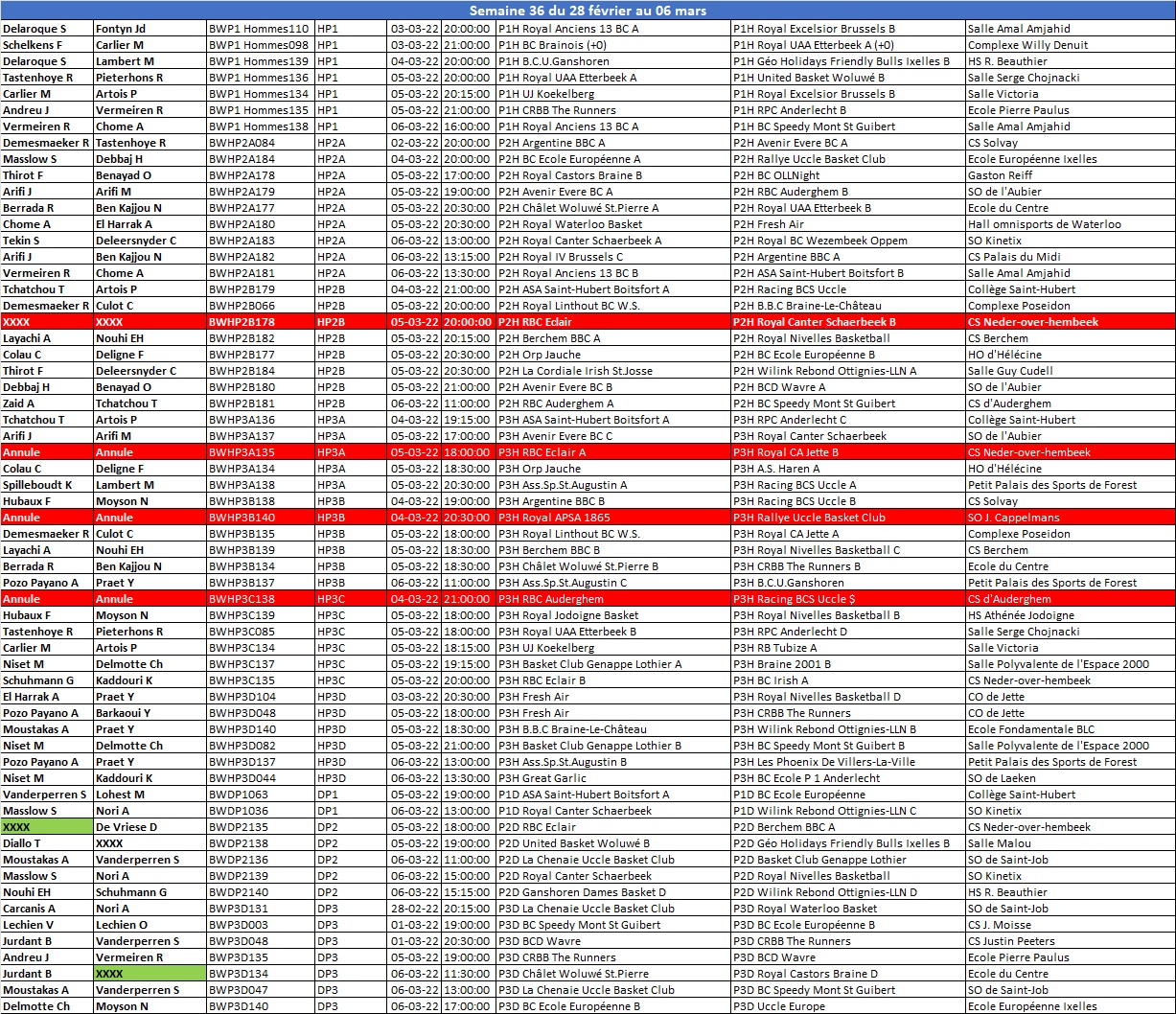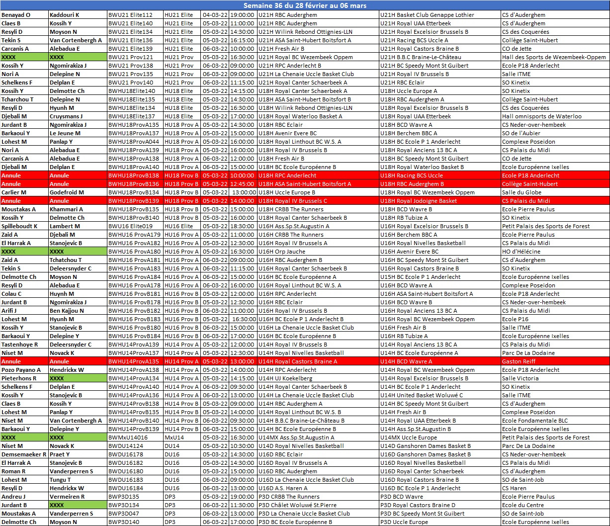 Désignations du 04, 05 et 06/03/22 04/03/2022 Nominations arbitres sem-36-28-fevr-au-03-mars-regionaux-jeunes sem-36-28-fevr-au-03-mars-seniors sem-36-28-fevr-au-03-mars-provinciaux-jeunes